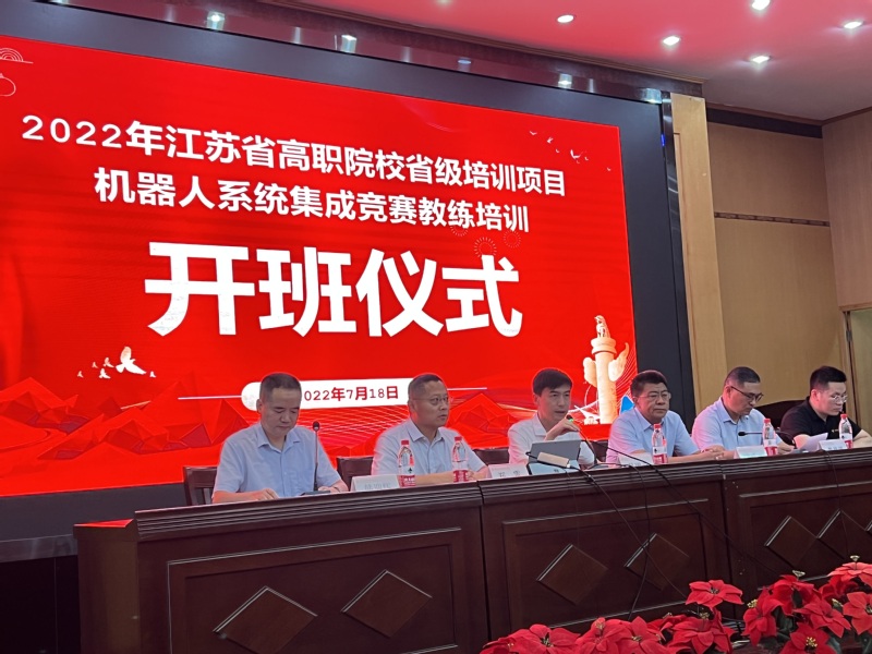7月18日江苏省高职教师省级培训班——教师专业技能竞赛教练培训“机器人系统集成”项目开班典礼在公司知行楼3201报告厅顺利举行。副董事长吴丽云,江苏省机器人系统集成赛项裁判、南京工程公司机械工程公司党委书记高成冲,江苏省机器人系统集成赛项专家郑雷,北京华航唯实机器人科技股份有限公司经理李文杰出席开班仪式。会议由智能控制公司副经理韩迎辉主持。