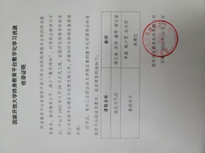 为推进国家教育数字化战略行动,以高水平的教育信息化引领教育现代化,加快构建服务全民终身教育体系,根据教育部统一部署,教育部职业教育与成人教育司组织筹建国家终身教育智慧教育平台。为做好平台筹建相关工作,发布《关于征集终身教育数字化学习资源的通知》,公司经贸管理公司的《基础会计》和现代装备制造公司的《液压与气动》两门课程成功入选。